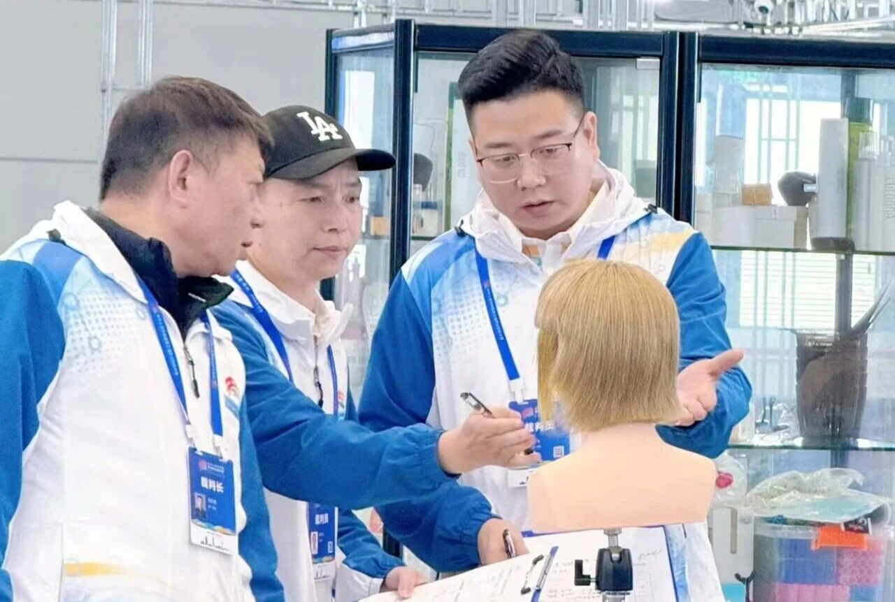 大赛三天7个模块,栗校长几乎没离开过赛场旁的观赛席,他的目光始终追着那个熟悉的身影——张成成握剪刀的手稳不稳,设计发型时眉头皱没皱,甚至递工具时的一个小停顿,都让他的心跟着轻轻揪一下。成成每完成一个模块,他悄悄松口气;遇到难题稍作停留,他又不自觉前倾身子,仿佛想隔着人群递去一份鼓励。那几天,张成成在赛场上的每一点进展、每一次起伏,都像一根细线,紧紧牵着栗校长的心,从日出到日落,从未松过。